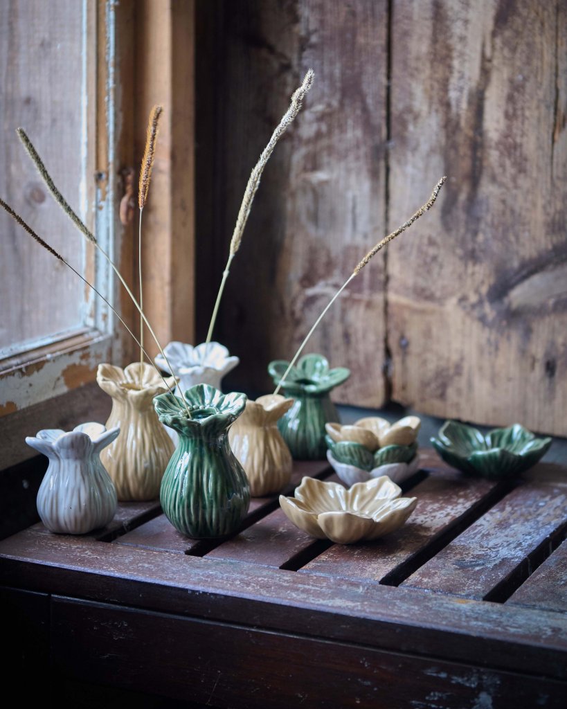 Små, söta, blomformade fat Ingrid i porslin, välj mellan litet eller ett lite större i storlek. Fin som dekoration och att matcha med små vaser Ingrid.