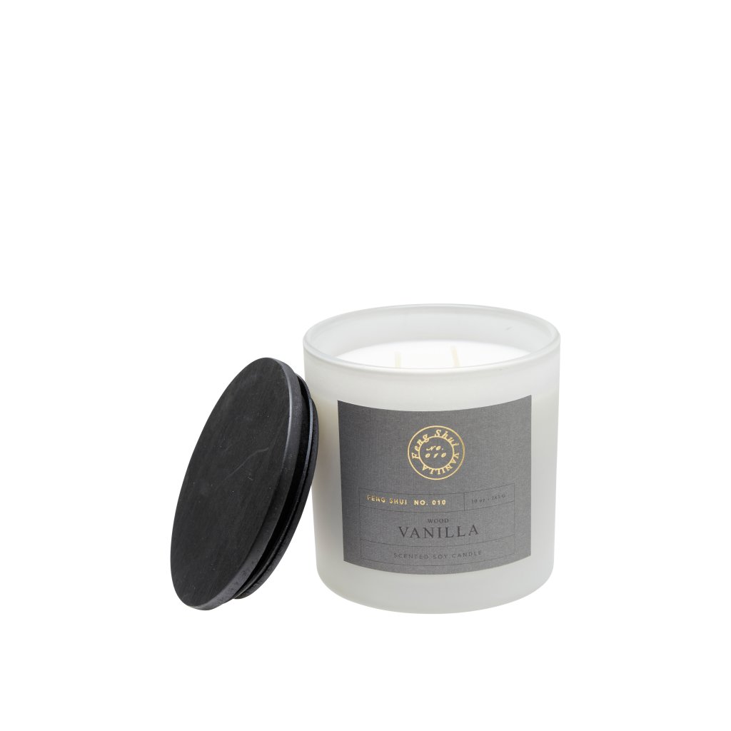 Stilrent doftljus Feng Shui med trälock med doft av vanilj och trä. Brinntid 48 timmar.