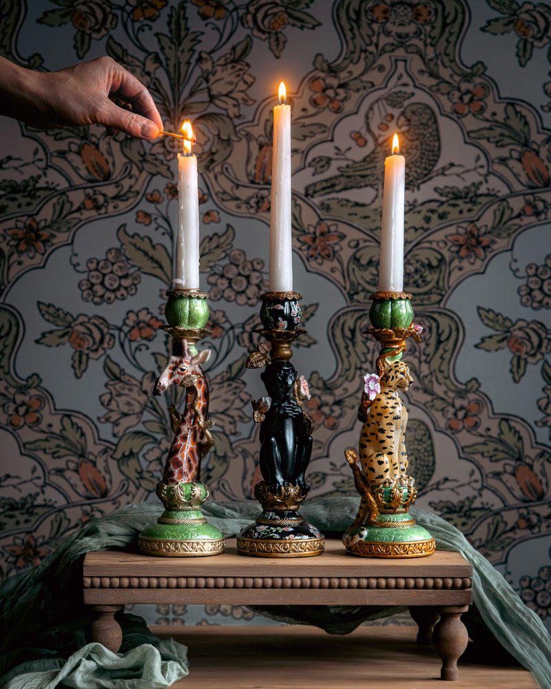 Denna ljusstake med apa lyser upp vardagsrummet och ger inredningen en exotisk touch.