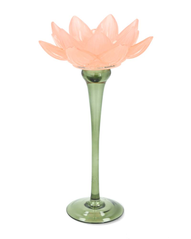 Näckros på fot, tillverkad i glas. Vacker som den är som dekoration, eller tillsammans med ett värmeljus för att sprida ett härligt ljus i rummet.